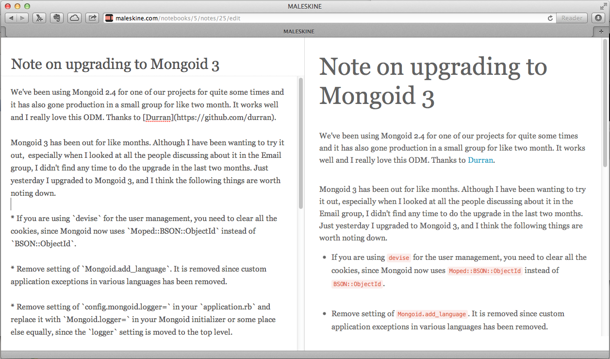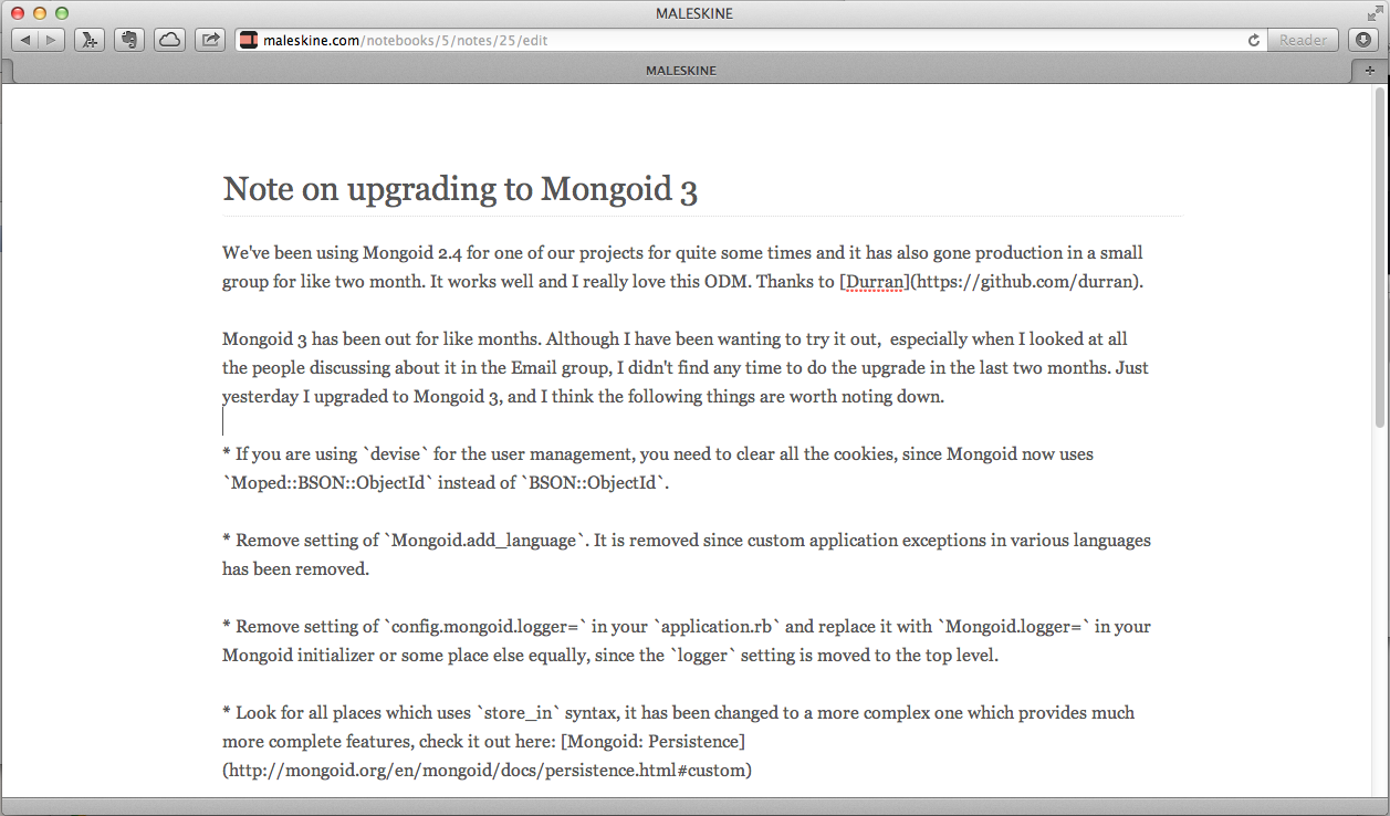 Mongoid 3 has been out for like months. Although I have been wanting to try it out, especially when I looked at all the people discussing about it in the Email group, I didn’t find any time to do the upgrade in the last two months. Just yesterday I upgraded to Mongoid 3, and I think the following things are worth noting down.